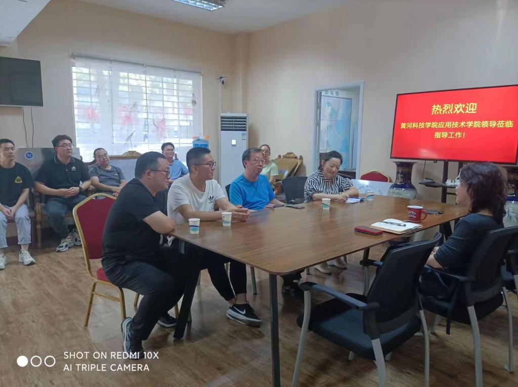 2023年8月29日上午,beats365中文官网经理徐斌,教务科研处处长孔艳丽一行来到郑州高新区,对正在郑州冬码智能科技有限公司实习的248名员工以及带队老师进行慰问,并与实习企业代表倪光辉总经理、技术总监付万广、实习负责人刘菲洋工程师进行实习实训方面的深入交流。