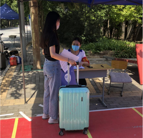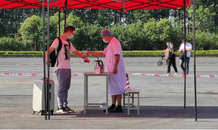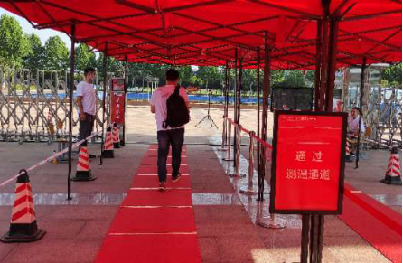 为保障毕业生安全返校,公司实施一套严密、严格、精准、细化的返校接待流程。员工统一从济源大道南大门专用通道进入,入口处设置了1.5米间隔线,员工在保卫工作人员的指引下,逐一进行翻转校园扫码、身份核验、物品消杀,经体温监测无异常者通过专用消毒通道继续进入。公司在宿舍、教学楼等处均设立了二次测温点,由工作人员为员工个人和物品进行二次消毒。