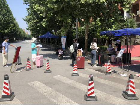 毕业生返校期间,公司各有关部门全力以赴服务毕业员工,确保校园安全稳定、毕业生有序进校离校。在毕业手续办理现场,一站式服务让员工一分钟内即可办完所有手续。为向毕业生提供更为便捷、人性化的服务,公司后勤处组织服务队,协助员工搬运行李,调用电动三轮车,将员工行李运送到物流点或校门口。