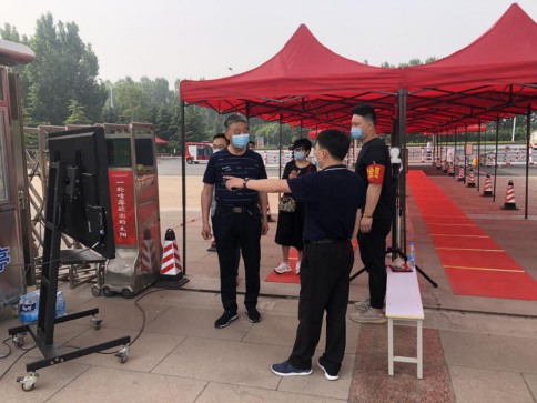 在公司南大门处,各部门工作人员和设施一早就位,随时接待返校的员工。送员工的车辆在校门外指定区域停车,员工下车后,保卫处安保人员立即引导车辆驶离。员工们保持1.5米安全距离,依次在工作人员的引导下进行测温、手部消毒和行李消毒、翻转校园扫码、更换新口罩,经过红外测温通道后进入校园。