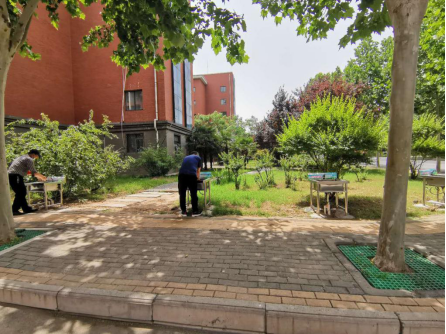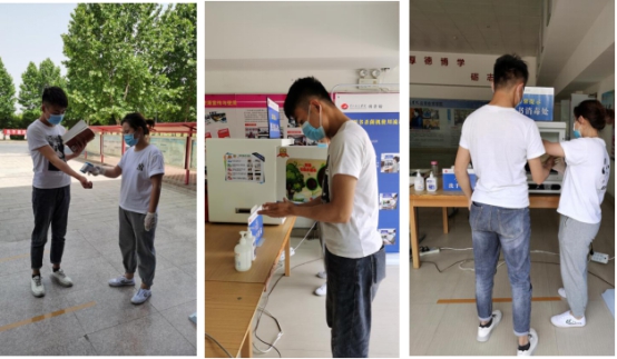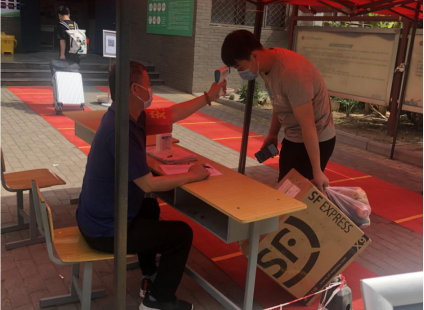 宿舍楼前,各专业辅导员及宿舍管理员已在迎接返校员工。员工沿指定路线到达宿舍楼后,首先扫翻转校园码,再由宿舍管理员对其测量体温,进行手部、行李和脚底除尘消毒,最后按照设定路线进入宿舍。宿舍楼实行前门进、后门出的单一路线管理,全体楼管员24小时值班,为员工提供全方位服务。
