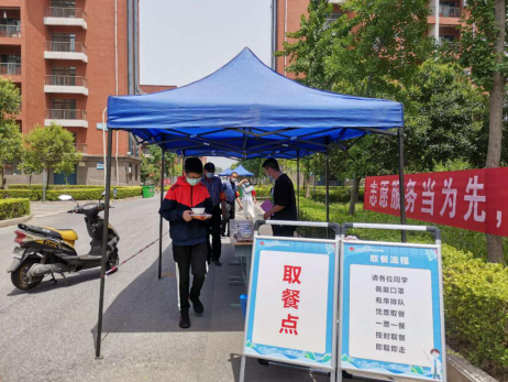 为保障员工返校后的饮食健康安全,公司采取配餐模式,经后勤处多方调研,联系餐饮公司每天进行营养餐供应。员工每天早中晚在指定地点领餐,用餐后统一回收餐盒并清理。宿舍楼下设取餐点,由工作人员引导员工有序排队,即取即走。