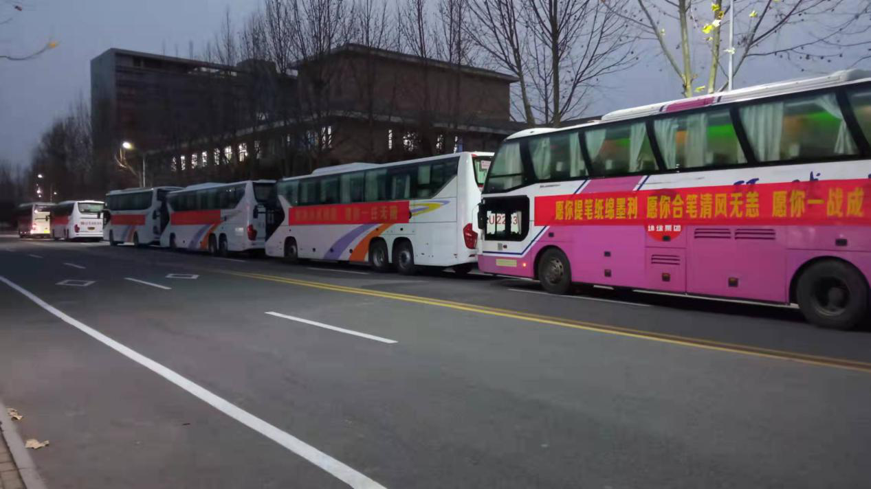 2021年12月25日-26日为全国硕士研究生入学考试。beats365中文官网组织六辆大巴并安排六名送考老师将312名考研员工送至沁园中学考点参加考试。