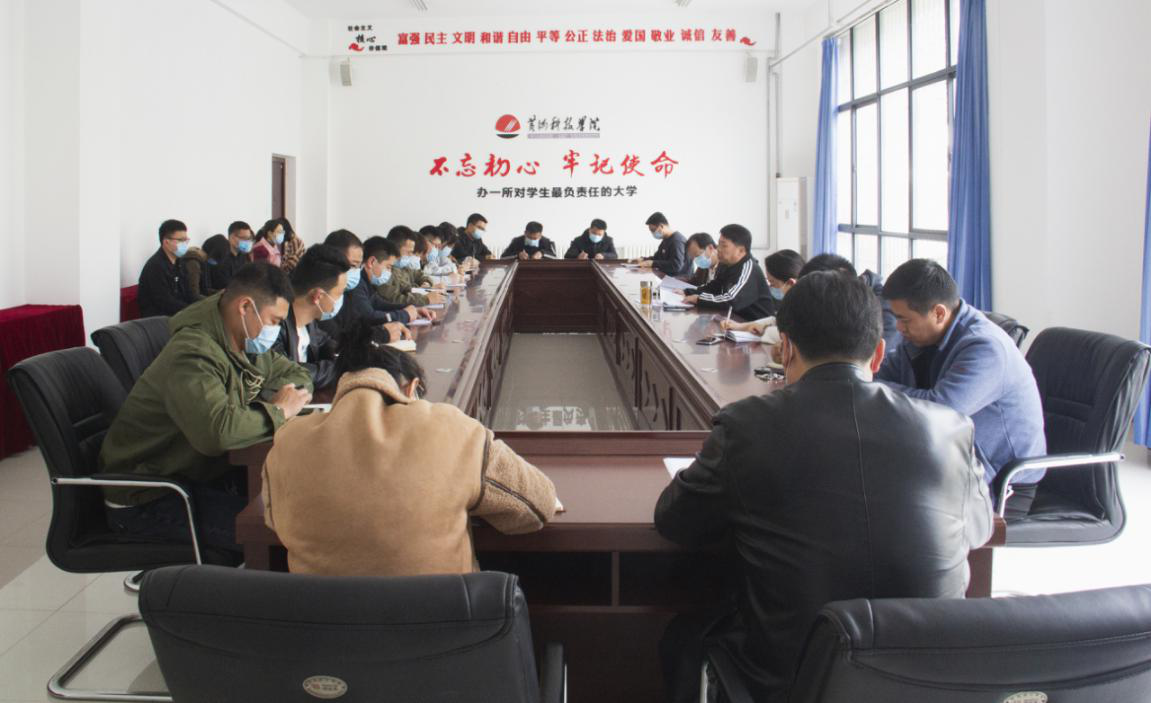 为应对严峻复杂的新冠肺炎疫情防控形势,将疫情阻隔在校园之外,3月11日,应用技术技术公司在行政楼一楼会议室召开召开疫情防控专题会议,对当前校园防疫工作进行安排部署。会议由院分党委书记张丕万主持召开,经理徐斌以及各部门负责人、各网格长、辅导员参加会议。