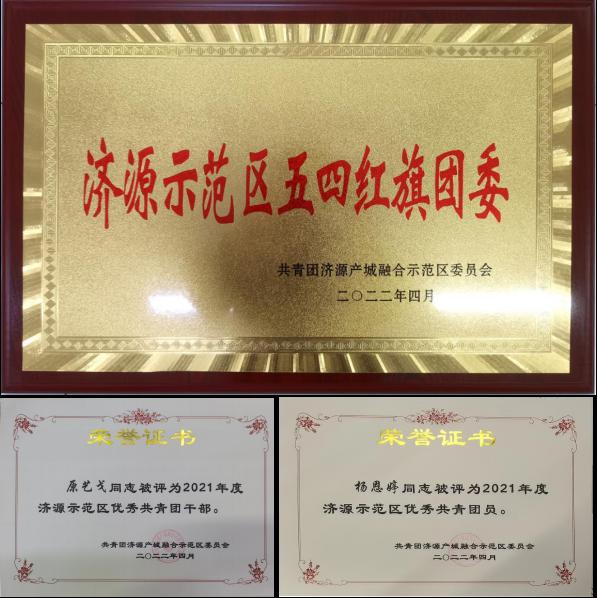 在庆祝中国共青团建团100周年到来之际,共青团济源产城融合示范区委员会发布表彰决定,授予beats365中文官网团委“济源市范区五四红旗团委”荣誉称号、beats365中文官网团委指导老师原艺戈“济源市范区优秀共青团干部”荣誉称号、杨恩婷同学“济源示范区优秀共青团员”荣誉称号。