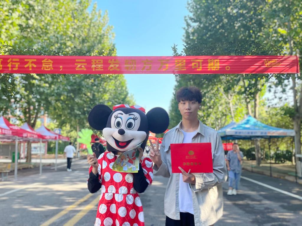 合影留念,齐聚应院。迎新日,如火如荼,新同学满怀期盼和憧憬与校门合个影;于展牌前留下真心的笑脸。