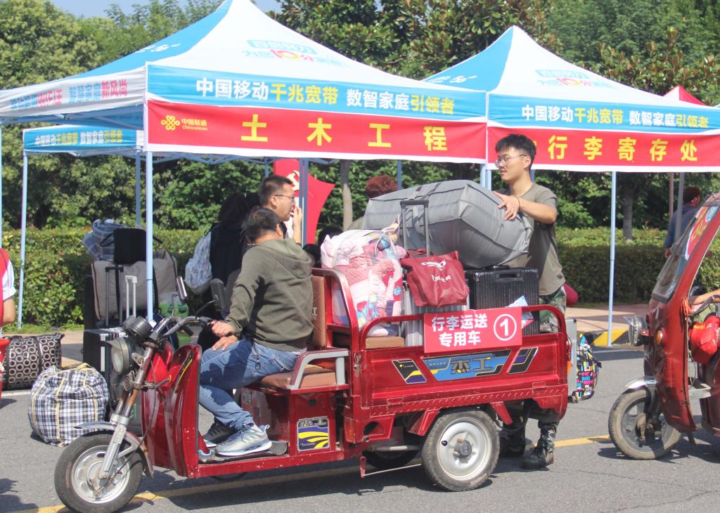 志愿青年,活力四射,搬运行李,指引道路,以心迎新,热情满满,志愿者们用最周到的行动欢迎新同学们。