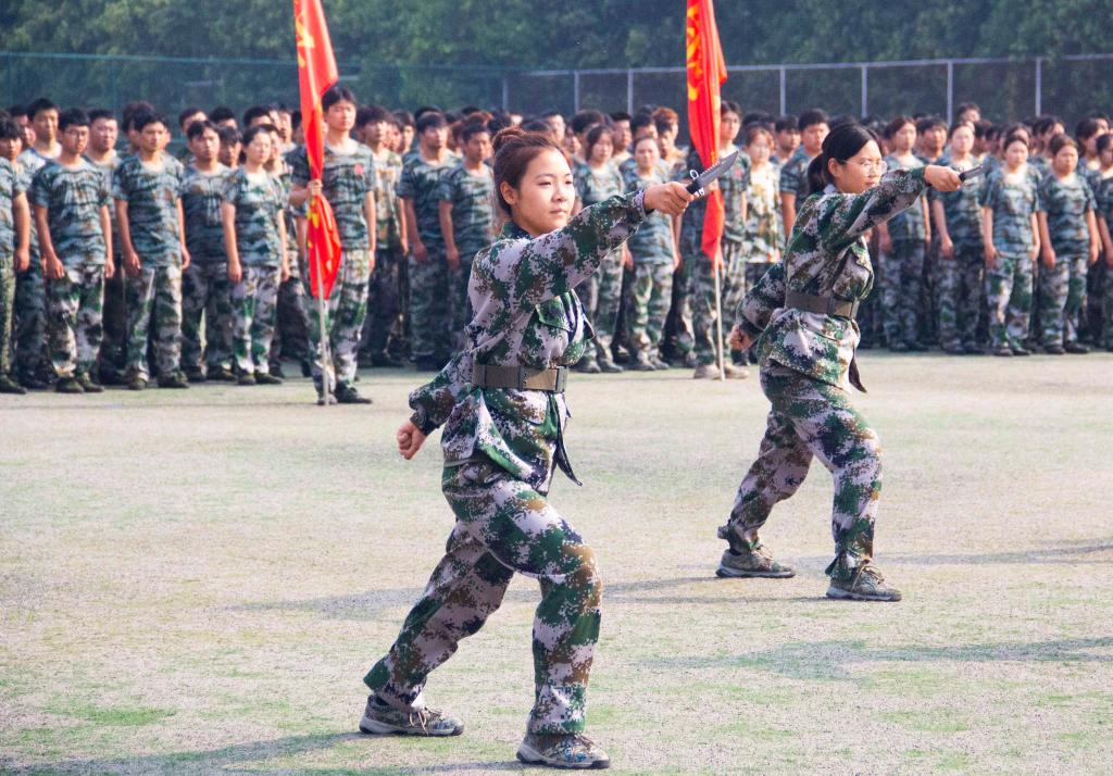 2023级参训新生以连为单位依次进行分列式和军训科目汇报,各方阵精神饱满、斗志昂扬,以刚劲有力的动作、整齐矫健的步伐,展示了军训的成果,接受校领导和部队首长的检阅。