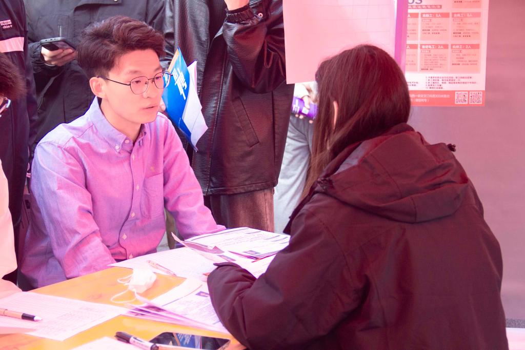 双选会现场人流如织、气氛热烈、秩序井然,广大毕业生在应聘过程中准备充分、目标明确、谈吐得体,充分地展现了自己的才华和能力。