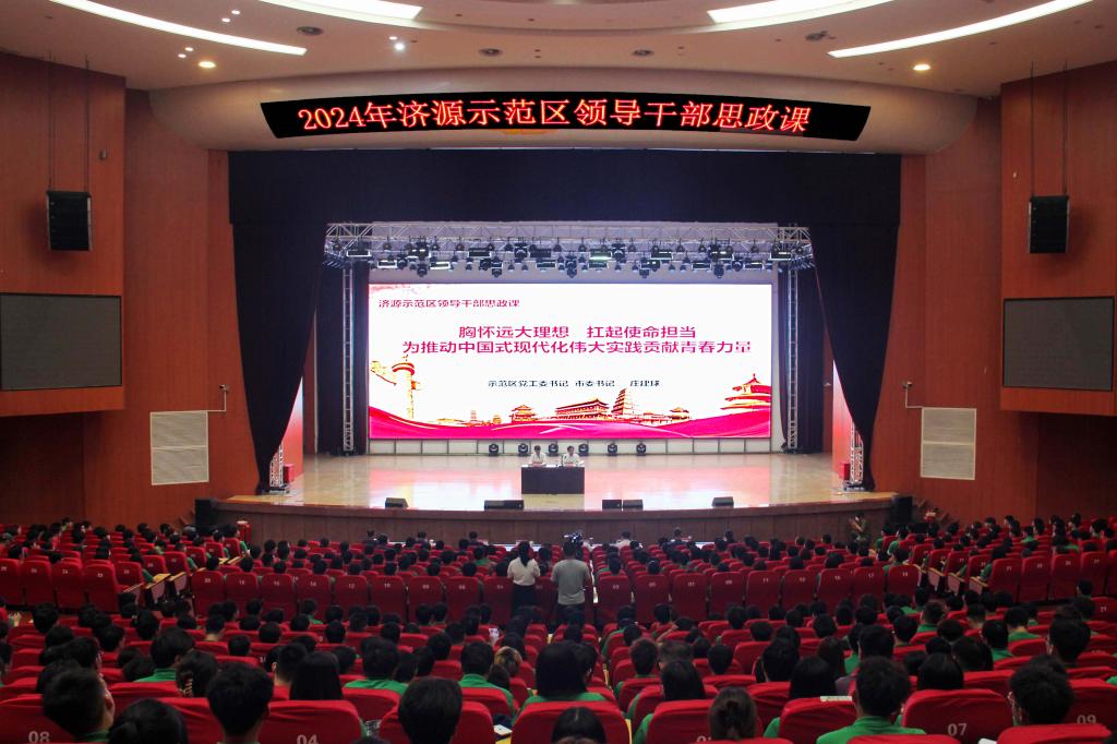 庄建球从“深入领会中国式现代化的深刻内涵,进一步坚定‘四个自信’;深入领会党中央重大决策部署,扎实推进中国式现代化建设济源实践;深入领会党对青年的要求期待,争做让党放心、爱国奉献、担当民族复兴重任的时代新人”三个方面,为青年学子上了一堂生动精彩、催人奋进的思想政治课。