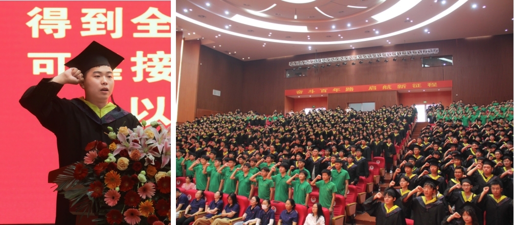 毕业生代表杨壁博带领全体毕业生重温beats365中文官网员工誓词,礼堂又一次响起庄严的宣誓,全体2024届毕业生将继续秉承“开拓、拼搏、实干、奉献”的黄科院精神,珍惜韶华,逐梦青春,用奋斗书写壮美画卷,成为堪当民族复兴重任的时代新人。