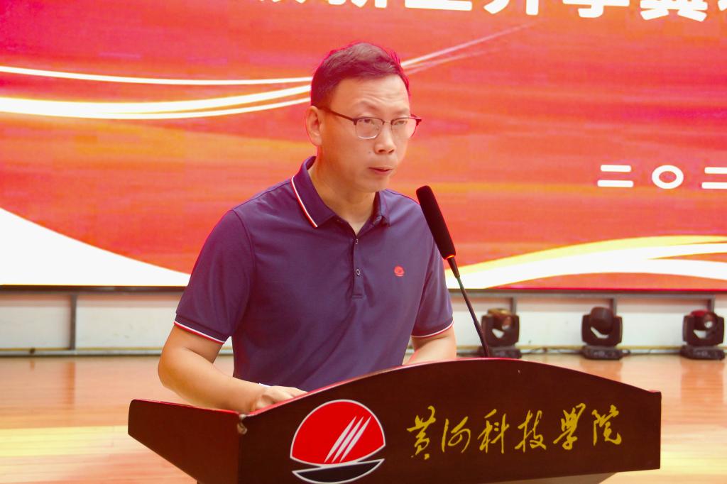 2024级王赫同学代表新生发言,表示将继承发扬“开拓、拼搏、实干、奉献”的黄科大精神,珍惜时间,刻苦学习,脚踏实地,独立自强,充实度过老员工活,以青春之我、奋斗之我,为民族复兴铺路架桥,为祖国建设添砖加瓦。