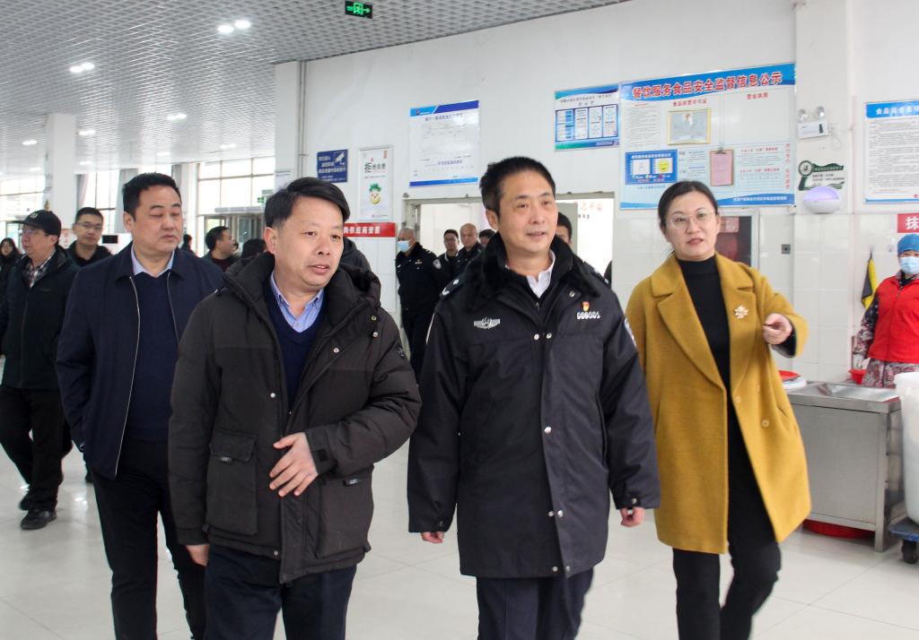 2月19日,济源示范区管委会党组成员、副市长、公安局局长牛少伟带领市场监督管理局、沁园办事处等有关部门领导莅临beats365中文官网开展校园公司食品安全督查工作,公司党委书记张丕万,经理徐斌及公司相关部门负责人陪同检查。