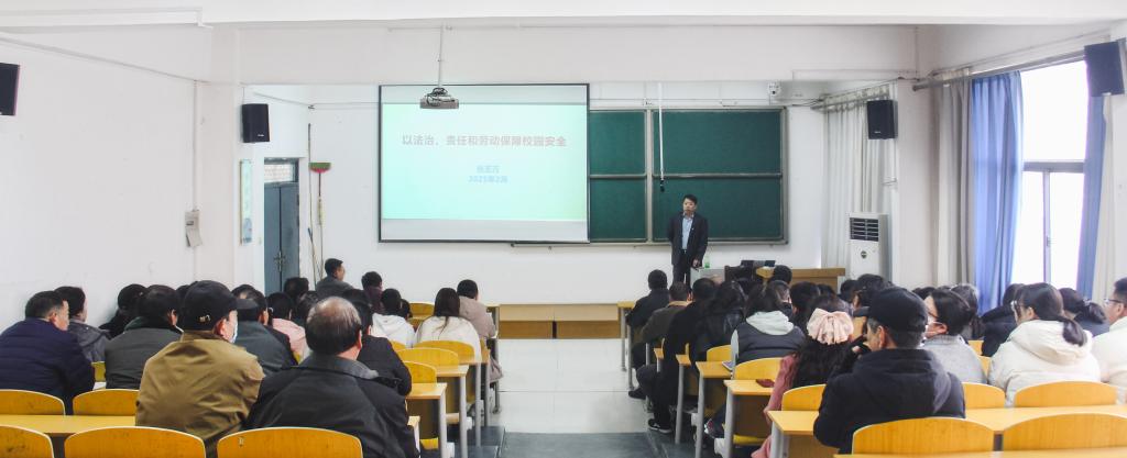 会上,张丕万书记围绕《以法治、责任和实干筑牢校园安全防线》主题开展安全教育讲座。他系统解读了安全生产与消防领域的相关法规政策,结合当前校园安全形势,提出了强化安全管理的工作路径与实施策略,并对具体任务进行部署。他强调,校园安全覆盖全体人员、全时段及所有业务环节,需践行“大安全观”理念,从“法治思维”“责任落实”和“辛勤劳动”三个层面构筑安全防护体系。一是深化法治实践,夯实安全根基:要求全员参与法治培训,强化领导干部依法履职能力,通过规范学习与精准运用法律法规,明确安全管理方向、细化执行标准、创新治理模式,确保校园安全管理工作依法规范运行;二是完善责任机制,强化执行效能:明确各层级岗位职责,以考核督导推动责任落地,形成“人人有责、层层负责”的管理闭环,全面提升基层治理精细化水平;三是聚焦一线落实,彰显实干担当:倡导深入员工管理和教学科研一线,贴近师生需求,以务实作风推进隐患排查、应急演练等基础工作,同时突出关键领域管理,加强对重点场所、高危环节及特殊群体的动态监测,通过思想引导与技能培训,增强安全工作的前瞻性与实效性。