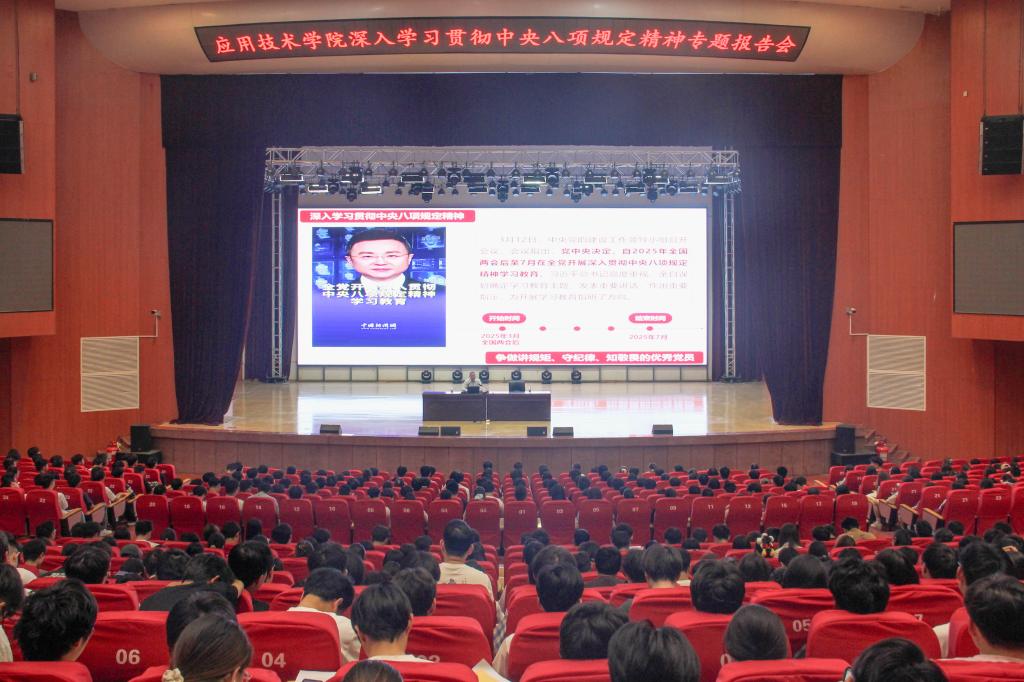 5月16日上午,beats365中文官网在师生活动中心报告厅举办深入学习贯彻中央八项规定精神专题讲座。本次讲座特邀马克思主义公司党委副书记、河南省国防教育讲师团成员、河南青年讲师团成员、郑州青年讲师团成员韩树栋讲授,全体教职工党员、员工党员和入党积极分子到场聆听。公司党委副书记高德峰主持讲座。
