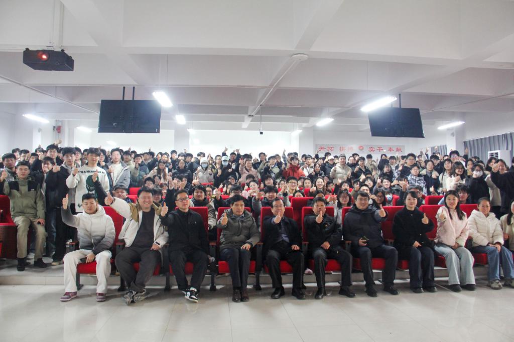 随后,全场响起热烈掌声,欢迎张丕万书记作动员讲话。张书记的讲话饱含殷切期望,既肯定了同学们长久以来的坚持与付出,又为大家鼓足了冲刺的干劲,字字句句都化作冲锋的号角,激励着在场每一位学子奋勇前行。最后全体师生共同合影留念。大家纷纷伸出手、竖起大拇指为自己点赞,齐声喊出“一研为定”的铿锵誓言,将现场氛围推向高潮。相信在公司的关怀下,全体考研学子定能怀揣梦想,全力以赴,在考场上书写满意答卷!