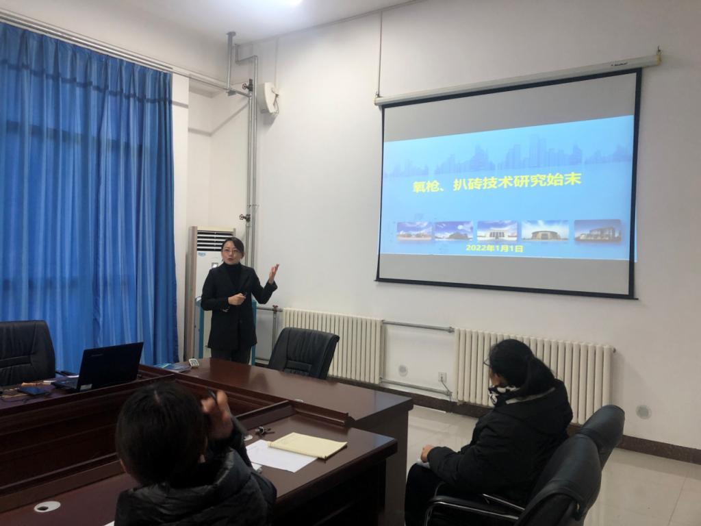研讨会首先由公司教务科研处孔艳丽处长介绍专利研究背景,孔处长通过图片展示,详细介绍了氧枪、扒砖机技术专利研究始末。接着公司学术委员会主任陈传举教授介绍氧枪发明专利的起因、过程及科学研究的重要意义。机械教研室张飞飞老师结合图片为大家讲解扒砖过程以及企业面临的扒砖难题;车辆教研室王瑞良老师讲述了在专利研究过程中做的相关工作;材料教研室李高欣教授详细介绍了扒砖机专利的内容,并对之前二级扒砖专利项目进一步改进过程进行了说明,并在此基础上产生第二个发明专利。会议期间杨宗霄副经理对相关专利技术创新点以及研究过程出现的问题进行了必要补充和说明。