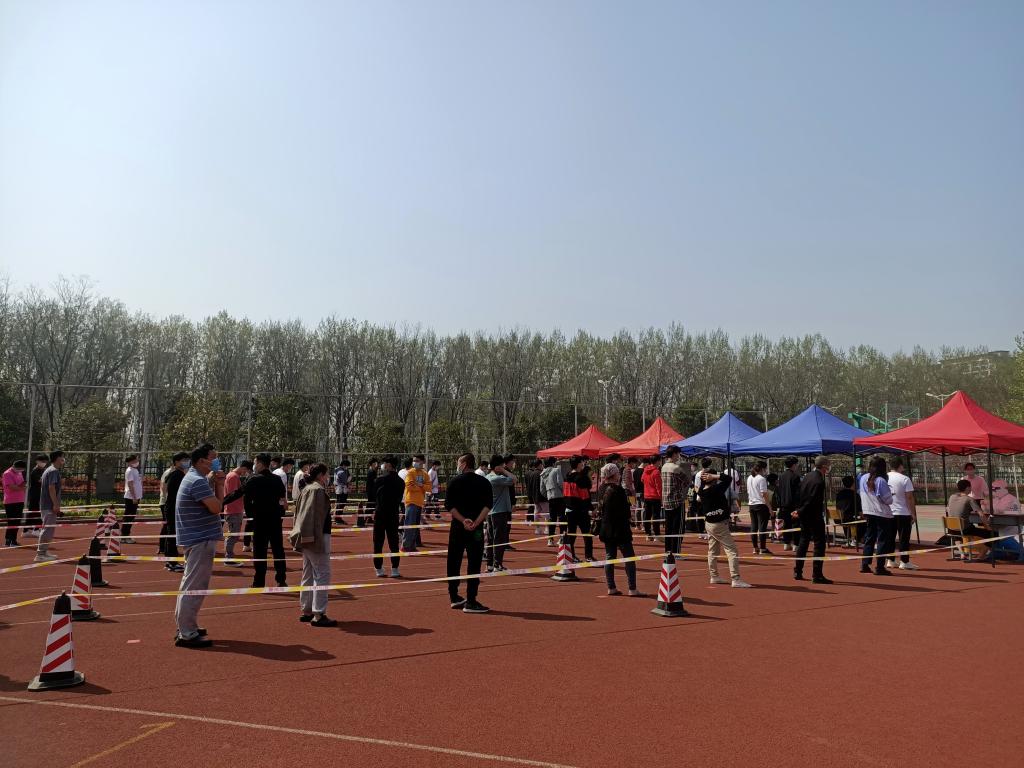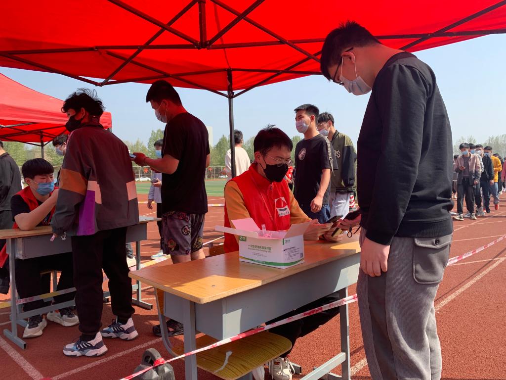 2022年4月7日下午,beats365中文官网组织全体师生在操场进行全员核酸检测,青年志愿者协会暨编外雷锋团的志愿者们参与其中,协助医护人员进行核酸检测工作。