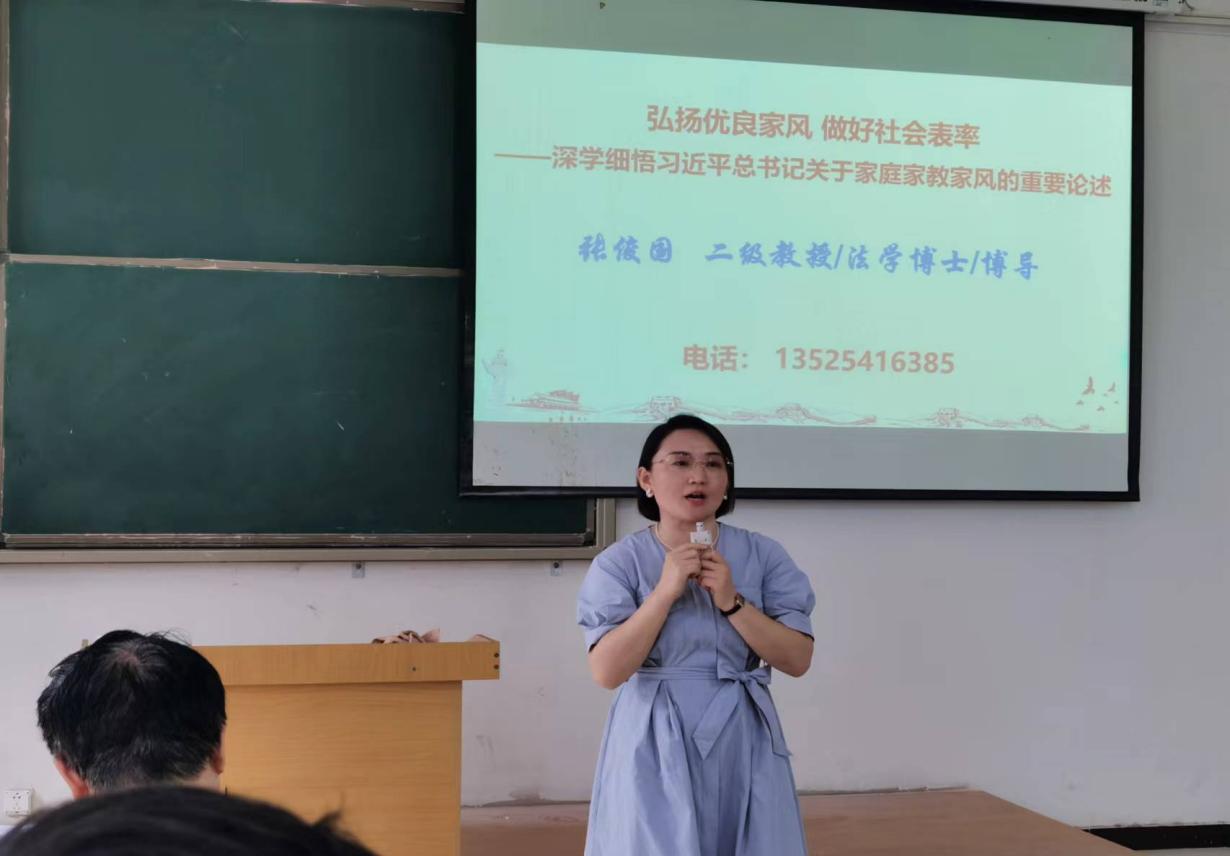 为深学细悟习近平总书记关于家庭家教家风的重要论述精神,进一步增强广大教师做好家庭家教家风建设的责任感和使命感,6月6日下午,公司组织开展了“弘扬优良家风 做好社会表率”专题报告会。此次专题会由公司思政科教中心主任张俊国教授作报告,全体教职工参加,会议由教务科研处孔艳丽处长主持。