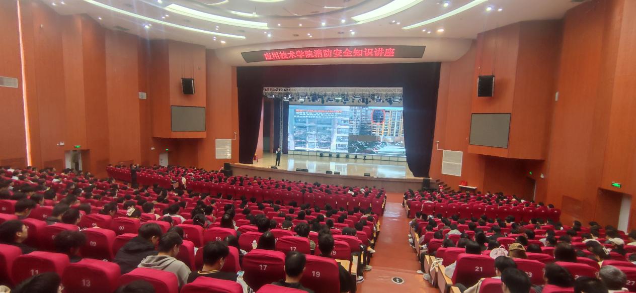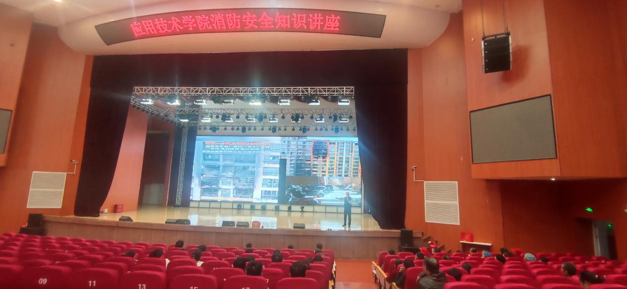 此次讲座分为三场,分别面向各宿舍楼寝室长、餐厅商业街从业人员、全体教职工。陈明教员通过图片、文字及视频等形式,结合近年来发生的火灾案例,围绕火灾如何预防、遭遇火灾时如何扑救、消防设施的正确使用方法等问题进行深入浅出的讲解和演示,对身边存在的安全隐患,如天然气泄漏、电线老化、手机充电器的安全使用、飞线充电等进行了安全隐患分析,以现教现学、及时答疑的形式回答了一系列在生活中遇到的消防安全问题。