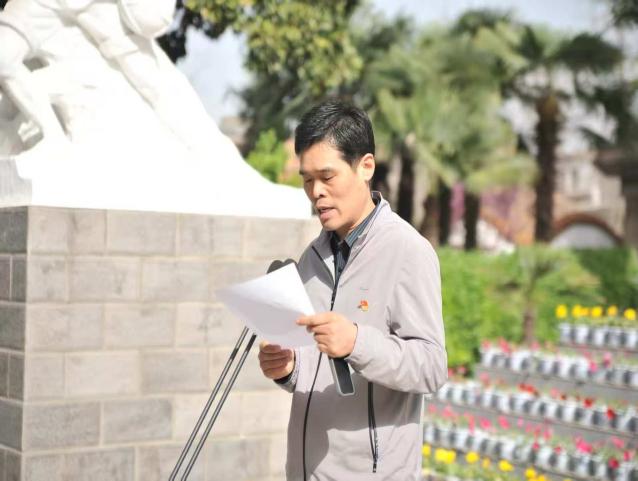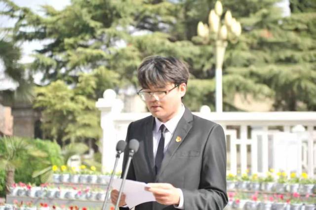 党员代表朱海洋发言,号召师生以先烈精神为指引,坚定理想信念,投身时代征程。他带领全体人员庄严宣,誓言铮铮,表达了继承先烈遗志、为实现中华民族伟大复兴而努力奋斗的坚定决心。