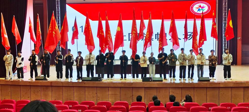 社联及各社团旗帜依次入场并在交接后合影,是社团文化的传承与新征程的开启。