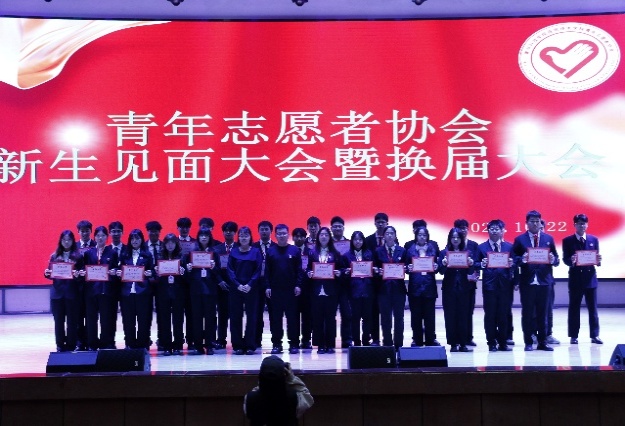 青年志愿者协会指导老师黄紫霞上台发言,为以后青年志愿者协会的工作指明方向,并为23级干部和24级干事颁发任命聘书,标志着新一批骨干正式接过责任接力棒。
