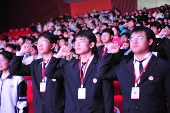 随后全体志愿者庄严宣誓,铿锵的誓言回荡在会场,彰显了志愿者们服务社会、奉献爱心的坚定承诺。