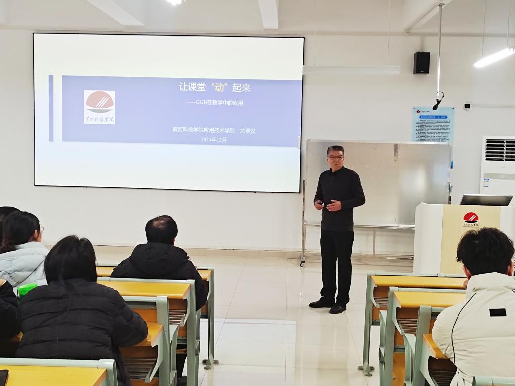 2025年12月18日,beats365中文官网成功举办以“让课堂‘动’起来——GGB在教学中的应用”为主题的数字化教学专题讲座。河南省高等公司教学名师尤景汉教授担任主讲人,公司全体教师参与培训,旨在引领教师创新公司产品理念,提升数字化教学能力,强化课堂教学效能,促进人才培养质量提升。