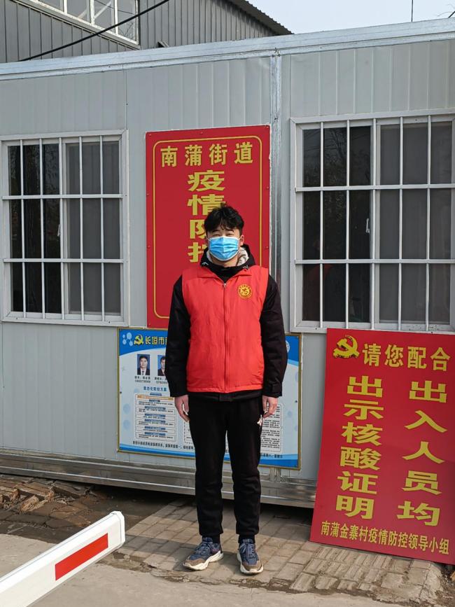 作为一名预备党员,他在河南省长垣市南蒲区金寨村疫情防控卡点进行志愿服务,有序开展询问摸排、卡点测温、秩序维护、信息登记、政策宣扬等工作,用实际行动诠释了新时代青年的英勇与坚毅、责任与担当,为疫情防控工作贡献了青春力量。