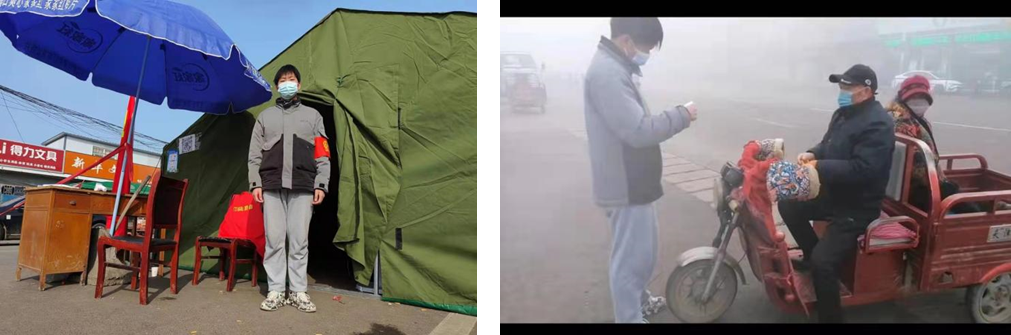 在现在的疫情防控中,他成为他们村的一名志愿者,协助村支书等,在疫情防控点帮助他们检查镇里的人出入证明,防控镇里的人随意外出,积极做到非必要人员不能出入,以及在晚上也帮助他们工作。包括组织本村的人去做核酸和挨家挨户去调查核酸做的情况,并且帮助他们整理外来回归人员的名单,以及村里每个人的疫苗接种情况,和村支书等人去为村民代购生活物资。