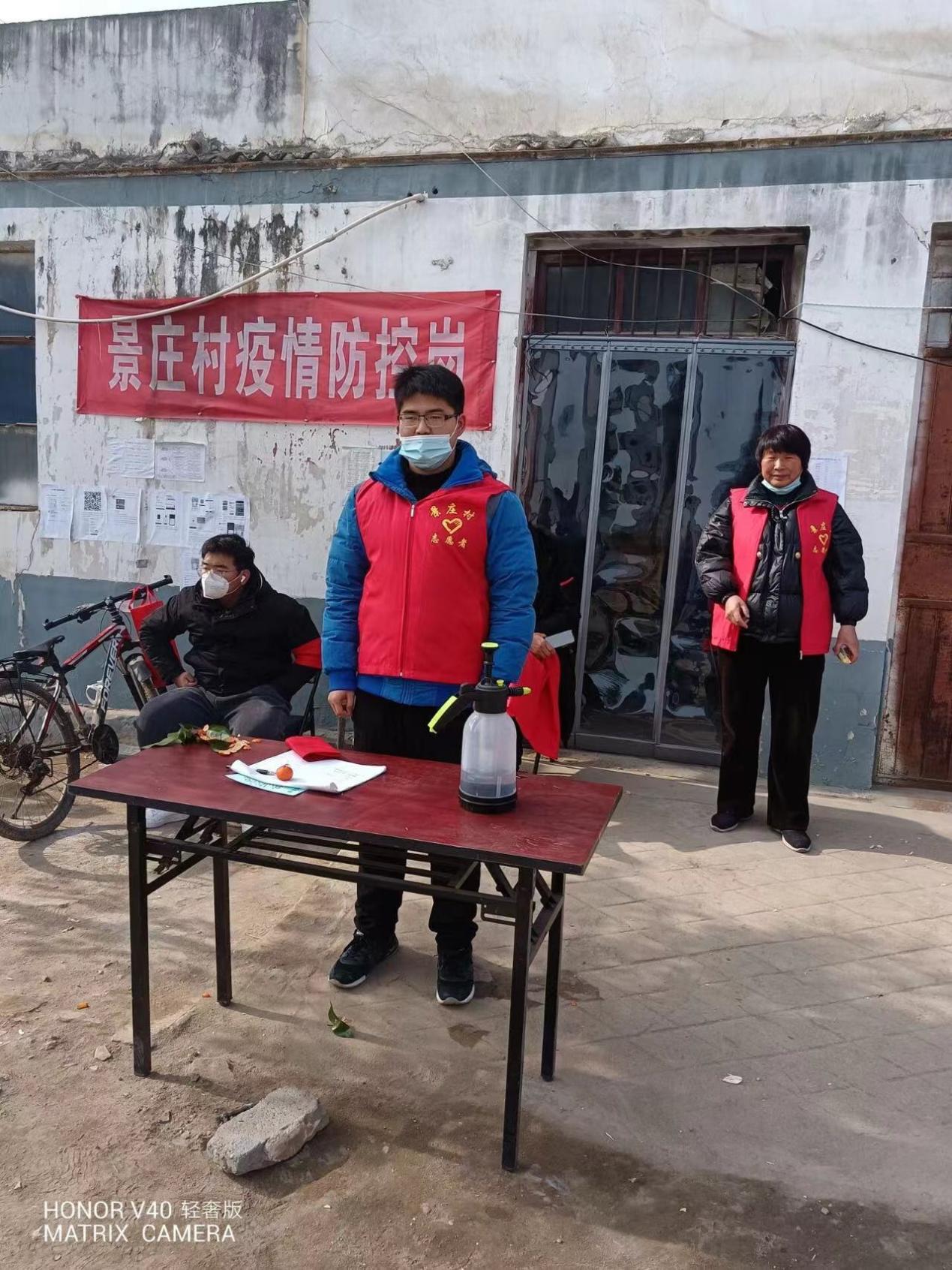 只要人人都献出自己的一点爱,世界将变得更加美好。寒假放假回家,疫情再起。岳冰州同学积极响应村庄号召报名参加了志愿者。在村干部的领导下,带上袖章,带上口罩,在主要十字路口,进行值守,对村内来往车辆进行登记和盘查,同时为村里外来人员进行信息登记,并测量体温,查看健康码行程码。在志愿服务期间,他主要负责登记村庄出入人员的基本信息,并按照规定统计省内外人员出入等工作。他坚持“为村民守好一道安全防疫线的原则”,第一次上岗是在早晨,但他丝毫不敢懈怠,出入村庄的人员和车辆虽不多,但来往人员凌乱,统计数据,电话回访,疫情防护变得格外困难,他仔细核对,认真应对。 2022的冬天冰雪严寒,有时冻得实在受不了,他垫垫脚、跳一跳,再想想疫情最前线的工作人员,又燃起了斗志 继续努力工作。虽然环境非常严寒,他却感到很高兴,因为大部分外来人员和车辆都非常配合排查工作,还有村民亲切地提醒志愿者们注意防护,这让他更有了热情,相信在全社会的共同努力之下一定可以很快战胜疫情。