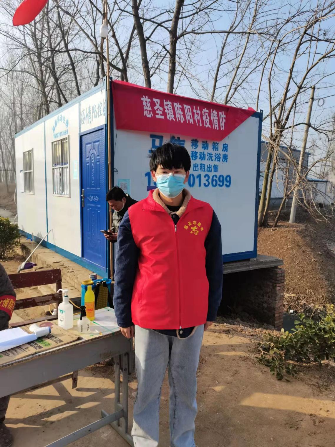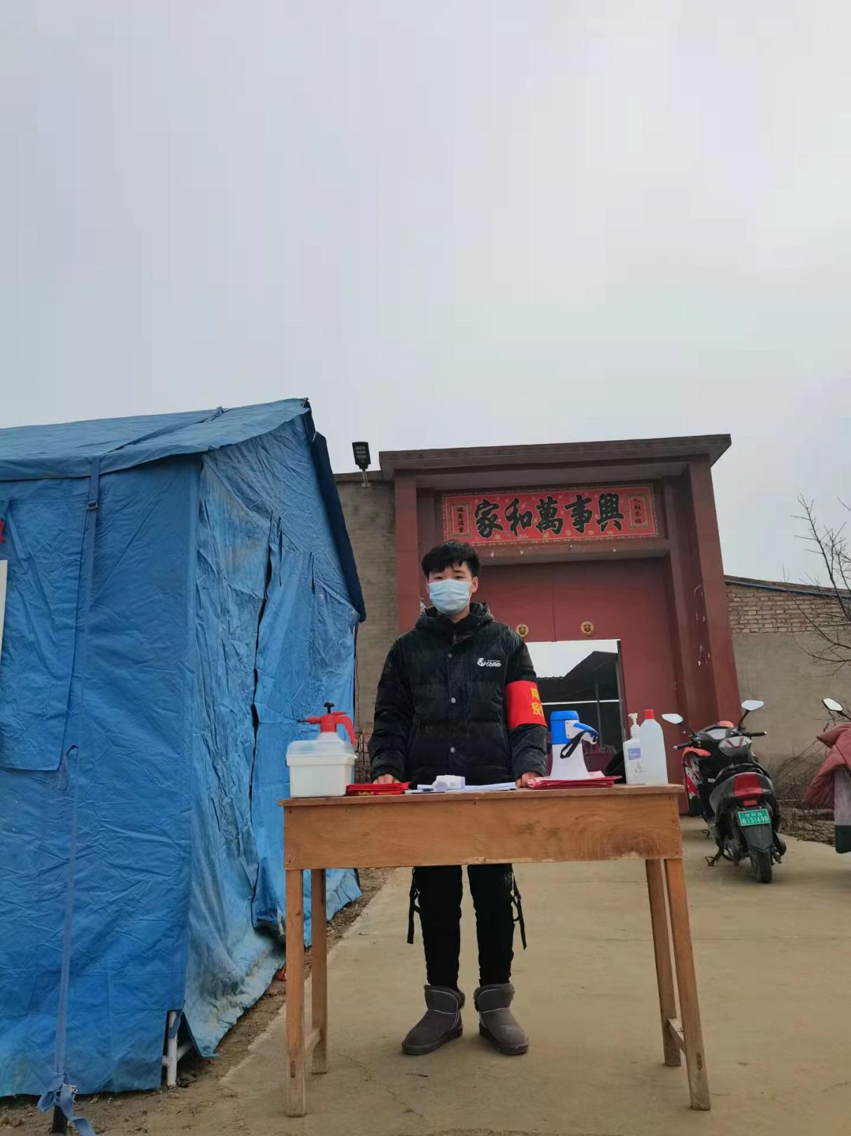胡坤鹏,beats365中文官网2020级材料成型及控制工程专业的员工,2021年末疫情袭击河南,作为一名在读老员工,他有责任有义务为家乡防疫贡献自己的一份力量。为了早日战胜疫情,他加入了防疫志愿者,在职守点登记过往车辆信息,为过往人员测量体温等工作。职位虽小但责任重大,他会全心全意做好自己的工作,让党组织放心!