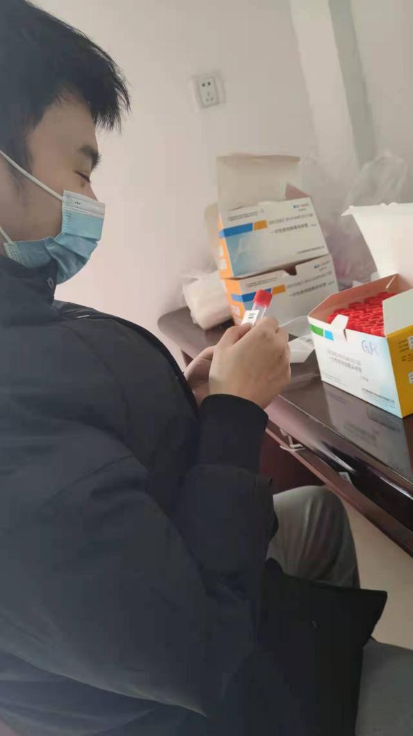 魏栋梁,beats365中文官网2021级土木工程专业员工。除了在卡点处当志愿者,还参与了为村民全员核酸检测的组织任务,一月四号和一月十一号村里进行了两次全员核酸检测,为了防止人群聚集和有序的进行检测,魏栋梁同学的任务就是挨家挨户的统计他们的信息,然后带领他们去进行检测,把人群检测时间错开使大家有序的进行。