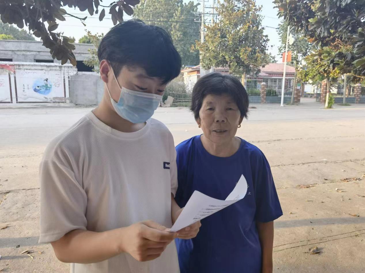 团队成员尹报在自己的家乡向群众普及“乡村振兴”战略,让在田地里的农民了解国家政策,激励农民积极参与其中。尹报制作了调查表,到田间寻找有时间的村民填写关于乡村振兴战略的调查问卷,向村民讲解乡村振兴战略的内容和意义,让乡村振兴深入村民的心,激发农村活力,提高劳动人民的获得感和幸福感。活动最后,尹报向展示了实施乡村振兴之后一些地区发生的巨大变化,强调实施乡村振兴对我国农村发展的重要性,并让村民亲自描绘农村未来的美好画卷。