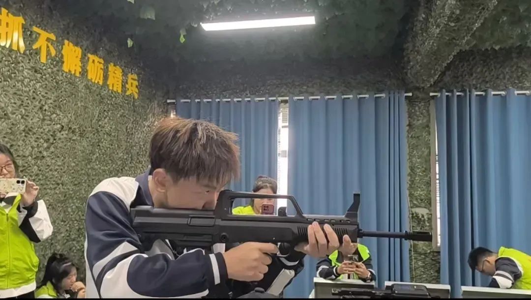 最后,同学们还实际体验了模拟枪支打靶。交织着兴奋与紧张,同学们在实践中不仅增添了兴趣,更学到了实用知识。