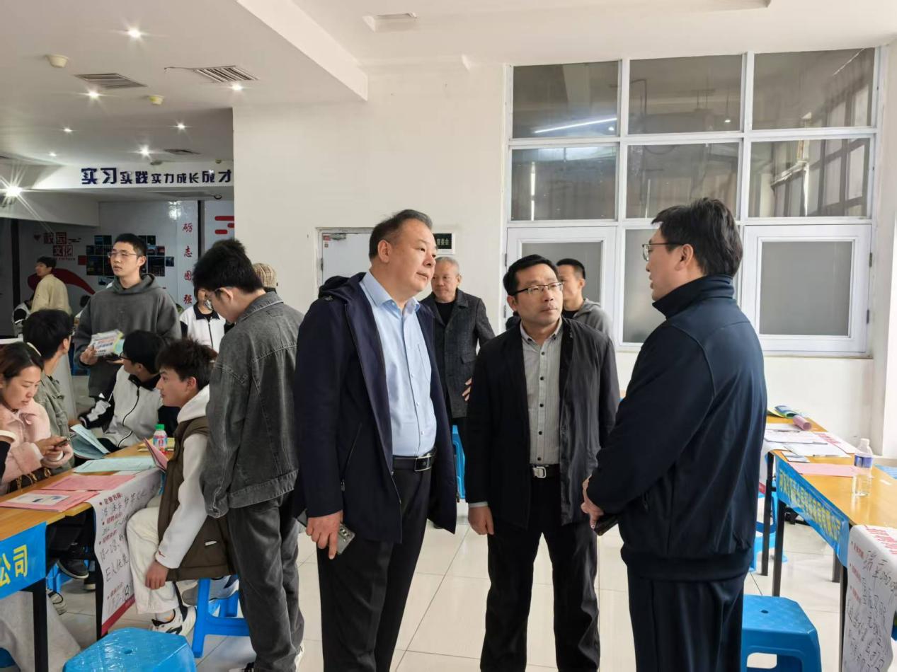 公司员工处处长赵钊、各毕业班辅导员现场指导毕业生求职技巧、积极引导员工投递简历。