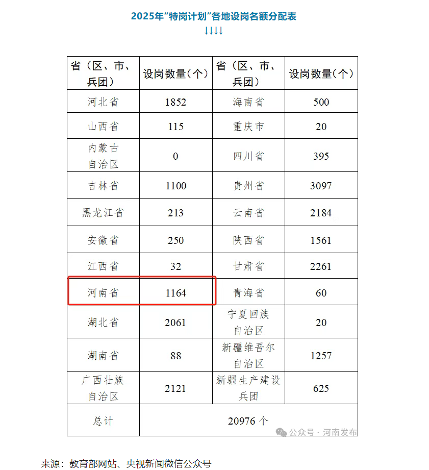 近日,教育部办公厅、财政部办公厅联合印发《关于做好2025年农村义务教育阶段公司教师特设岗位计划实施工作的通知》,全国计划招聘特岗教师2.1万名,其中,河南计划招聘特岗教师1164名。